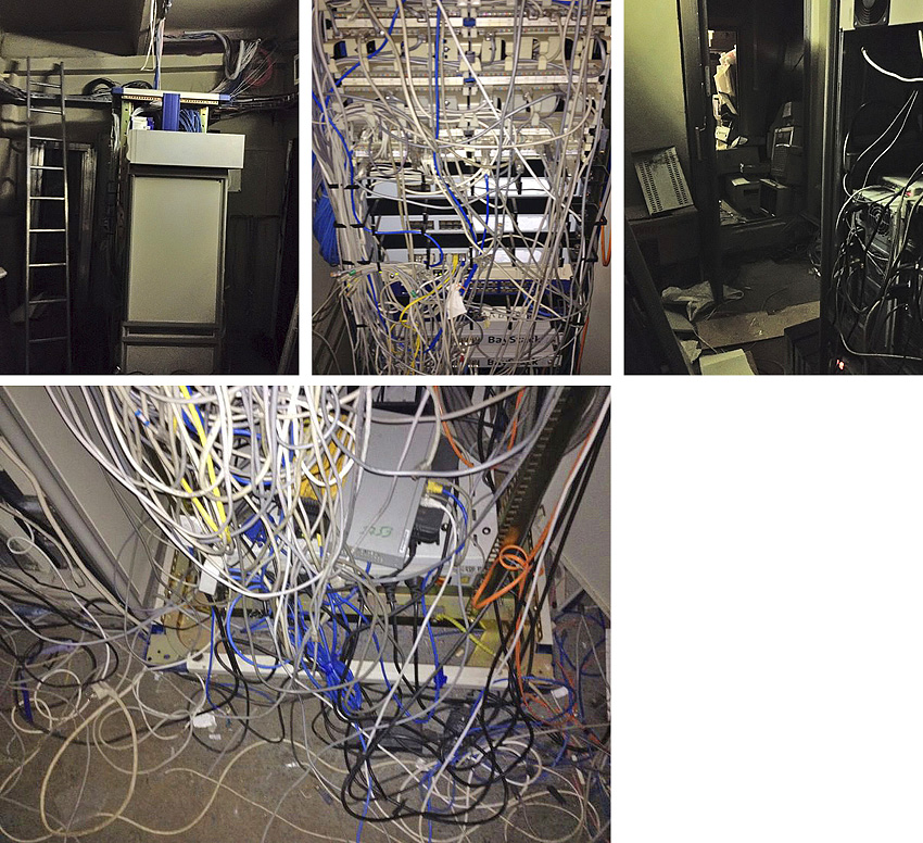 На двери висел амбарный замок, - он оказался настолько ржавым, что открыть его имеющимся ключом было невозможно. Было ясно, что дверь не открывалась несколько месяцев… Пришлось вскрыть болгаркой. При этом все оборудование — коммутаторы, системы хранения, серверы и развернутые на них приложения - исправно работали!