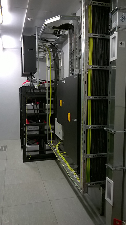 Точно так же зарезервирована вся система электропитания – внешние вводы, ДГУ, батарейные комплекты, модули распределения в стойки. ИБП произведены на заводе Huawei. Все ИТ-оборудование ― также производства Huawei.