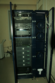 В качестве системы обработки данных был выбран компактный блейд-сервер Fujitsu, а в качестве системы хранения данных и системы резервного копирования – оборудование EMC. Проект по созданию микро ЦОД на месторождении был реализован в несколько этапов. Сначала всё закупленное оборудование было настроено инженерами ГК в Красноярске, на территории заказчика, а потом доставлено на месторождение. На следующем этапе был осуществлен монтаж шкафа и оборудования, пуско-наладочные работы и запуск микро-ЦОД. Пусконаладочные работы системы кондиционирования микро-ЦОД (прокладка трасс кондиционирования, настройка блока кондиционирования) и систем автоматики (управление освещением в стойке, пожаротушение) выполнялись специалистами компании Utilex. Инженер ГК «СибитSystems» произвел установку настроенного оборудования в стойку, коммутацию кабелей передачи данных и электропитания, подключение к существующей ЛВС, маркировку всех кабелей установленного оборудования, установку и настройку ИБП заказчика, проверку работы оборудования с заказчиком.